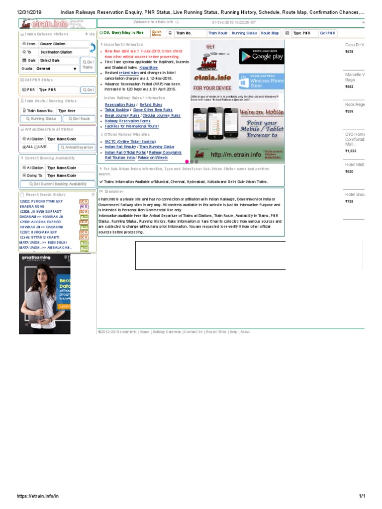 Indian Railways Reservation Enquiry Pnr Status Live Running Status Running History Schedule Route Map Confirmation Chances Arrival Departure Fare Indian Rail Etrain Info Complete Railway Information Rail Transport Land Transport - Sample larger than population make: