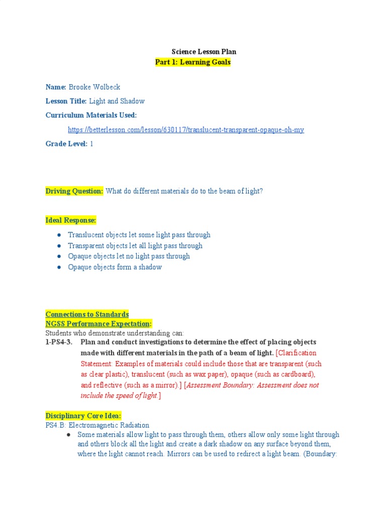 Brooke Science Lesson Plan 1 Shadow Light - Select the objects you want translucent with both the variation event and hidden event.